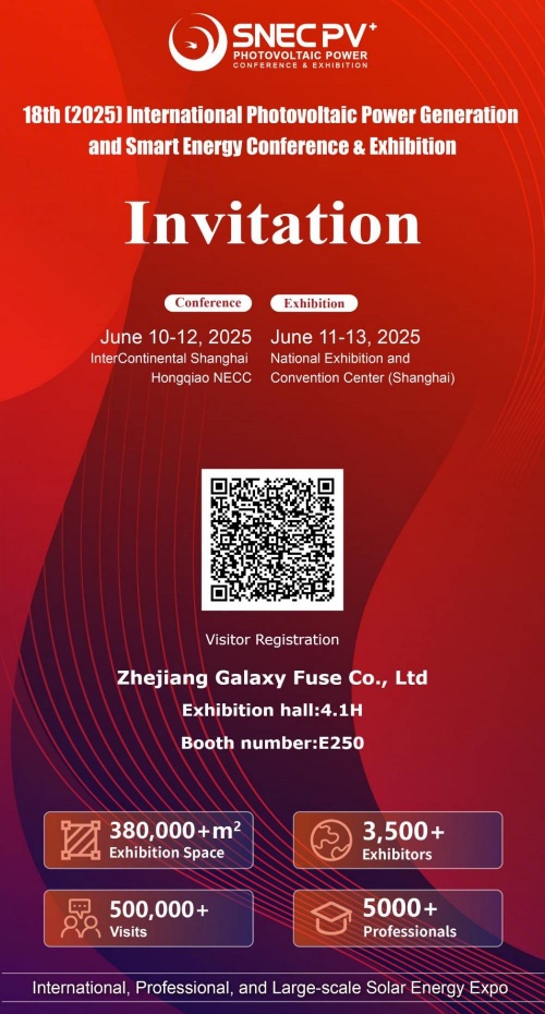 हामी त्यो घोषणा गर्न खुसी छौंZheziag ग्यालक्सी फ्यूज कम्पनी, लिमिटेड। आगामी मा प्रदर्शन हुनेछ1th (20225) अन्तर्राष्ट्रिय फोटोभिटल पावर उत्पादन र स्मार्ट ऊर्जा सम्मेलन र प्रदर्शनी (स्नी CV + 2025)शंघाईमा। फोटोविद्रिक र नयाँ उर्जा क्षेत्रहरूमा प्रमुख वार्षिक घटनाको रूपमा, स्नी + ले एक जनालाई उद्योग प्रवृत्ति र उत्पादनहरू प्रदर्शन गर्न अग्रणी ग्लोबल ग्लोबल कम्पनीहरू र पेशेवरहरू प्रदान गर्दछ।